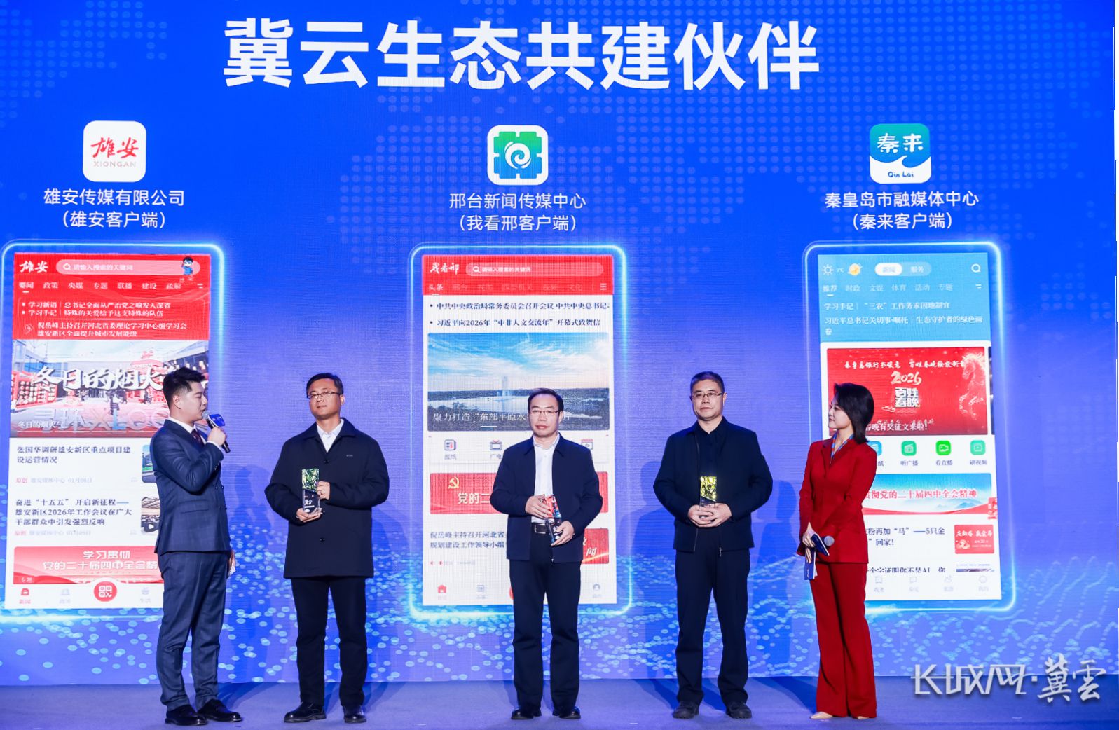 现场为秦皇岛市融媒体中心、邢台新闻传媒中心、雄安传媒有限公司授牌。长城网·冀云客户端记者李相伯 摄